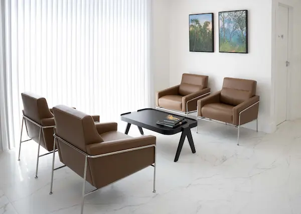 Arquitetura de interiores contemporânea, sofisticada e objetiva.